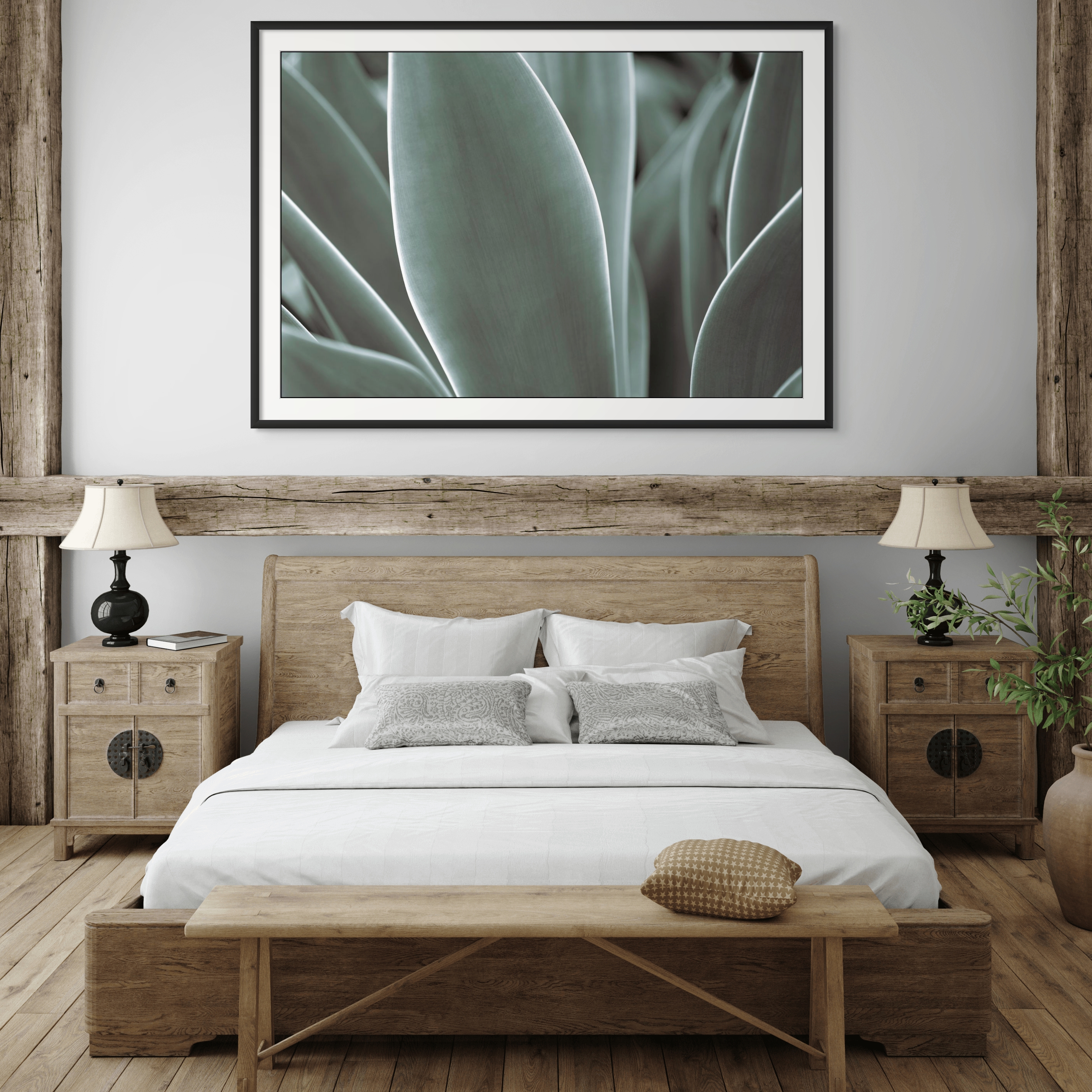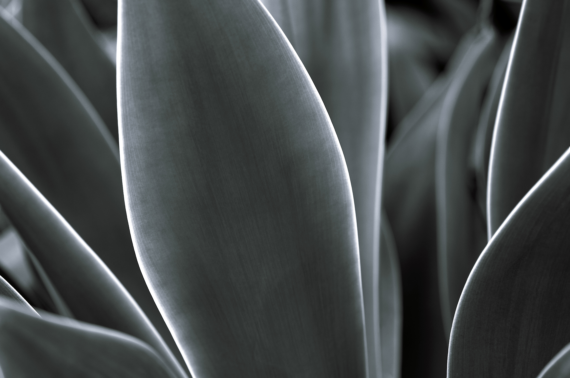 This artwork is a monochrome photograph depicting a cluster of large, elongated leaves. The leaves are captured in close-up, highlighting their sleek, smooth textures and soft curves. The varying shades of grey create a soothing, almost abstract composition that emphasizes the natural forms and subtle details of the leaves, including their gentle contours and fine lines. The overall effect is calming and elegant, drawing attention to the inherent beauty of the natural elements.